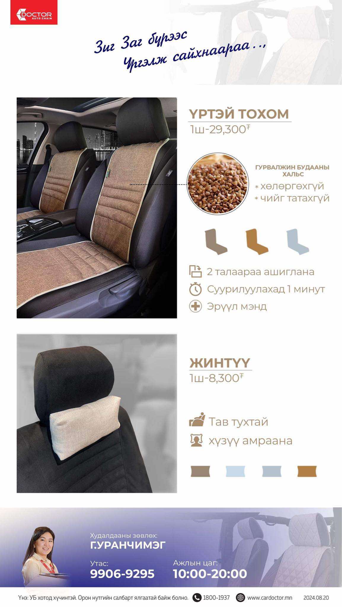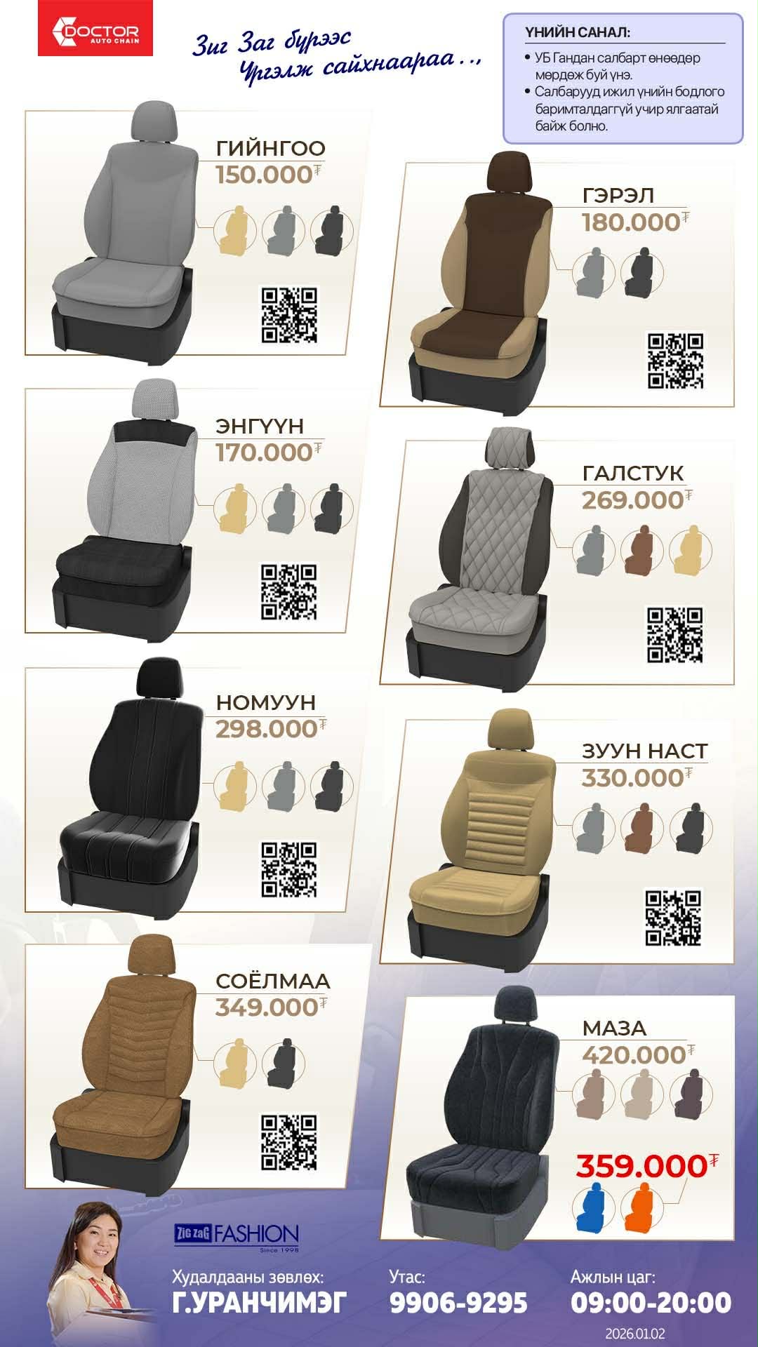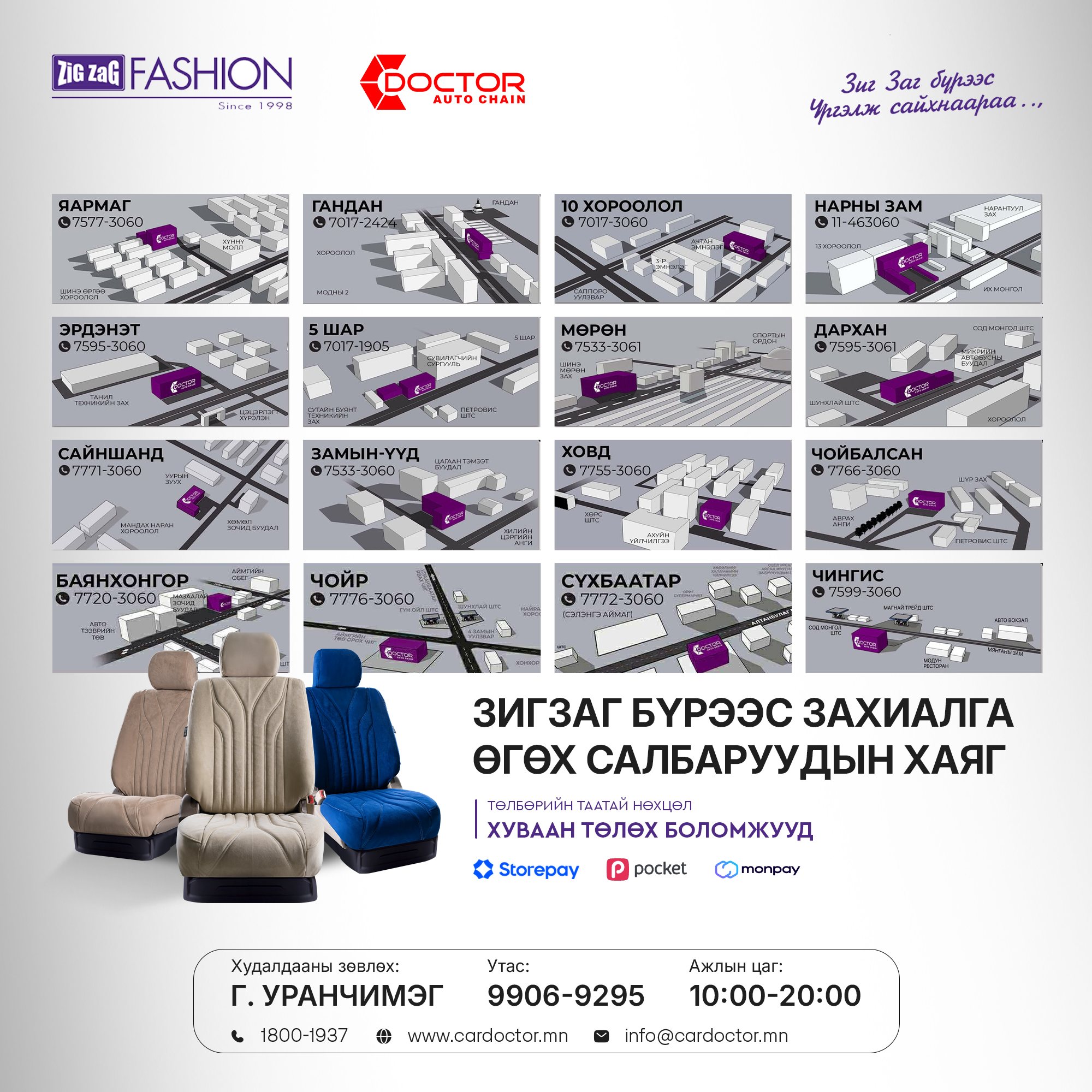 Зиг Заг автомашины суудлын бүрээсээ та өөрт ойр байрлах Доктор Авто сүлжээний бүх салбараас захиалах боломжтой. Бид таны автомашинд яг тохирсон, чанартай, тав тухтай суудлын бүрээсийг мэргэжлийн түвшинд урлах болно.